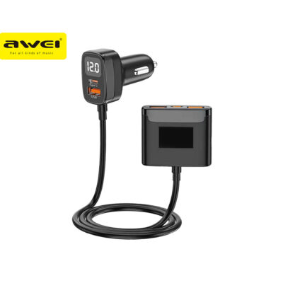 - 5 output ports and 1.5 meters cable for front and rear seats