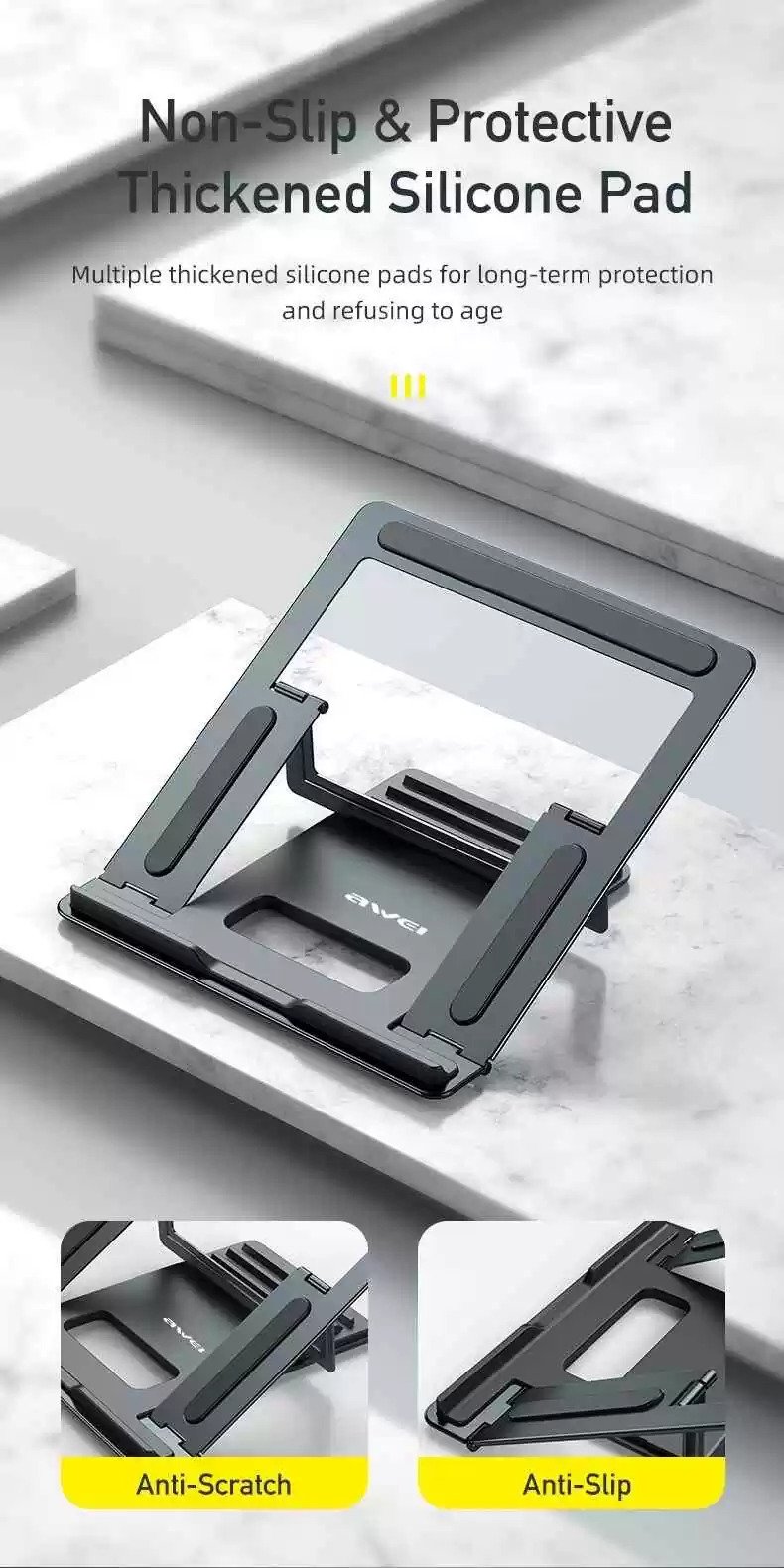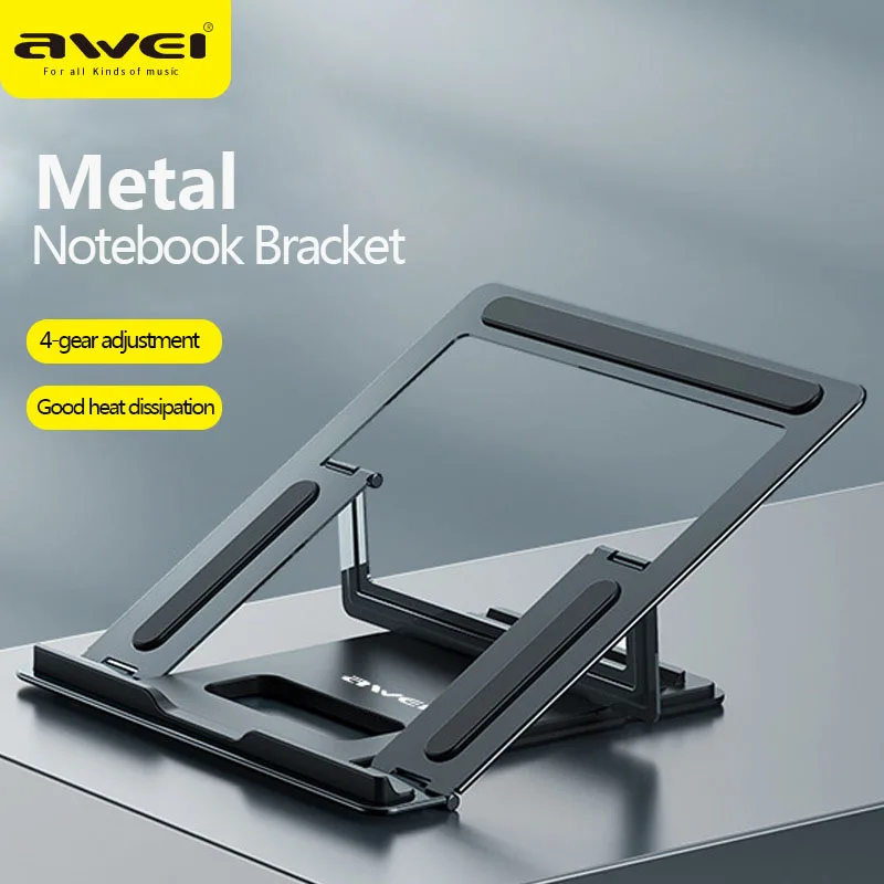 Awei X30 Metal Desktop Holder 4-Gear Adjustment Folding Laptop Stand Heat-dissipation Hollow Design Holder For PC Ipad Bracket
