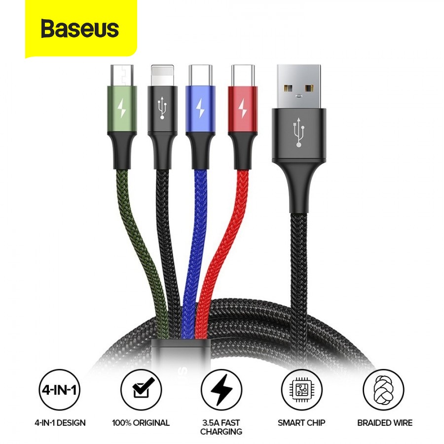 Buy Baseus Fast 4-in-1 Cable For lightning + Type-C (2) Micro 3.5A 1.2M Black, CA1T4-B01, USB available at mybrandstore.pk