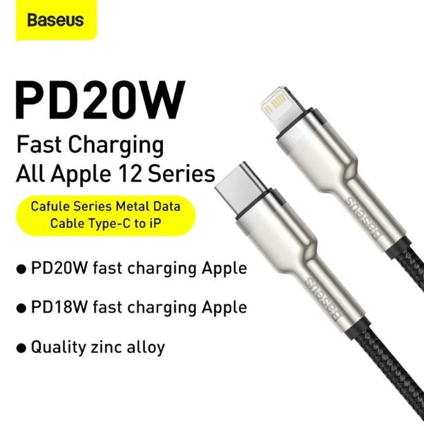 Buy Baseus Cafule Series Metal Data Cable Type-C to iPhone PD 20W 1m Black available at mybrandstore.pk