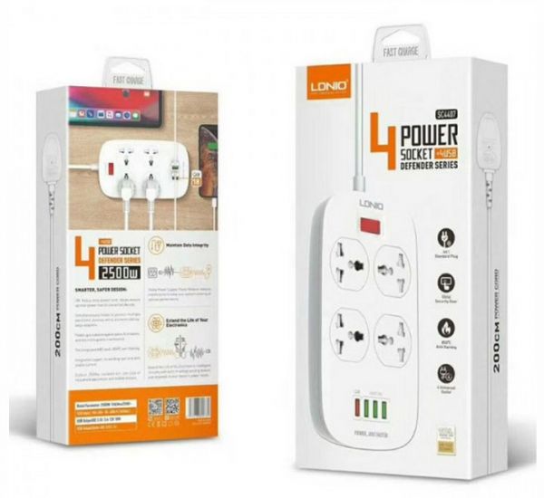 LDNIO SC4407 Heavy Duty Power Socket Extension 4 Power Plug Socket & 4-USB Port with 2M Cord available mybrandstore.pk with Free Shipping.
