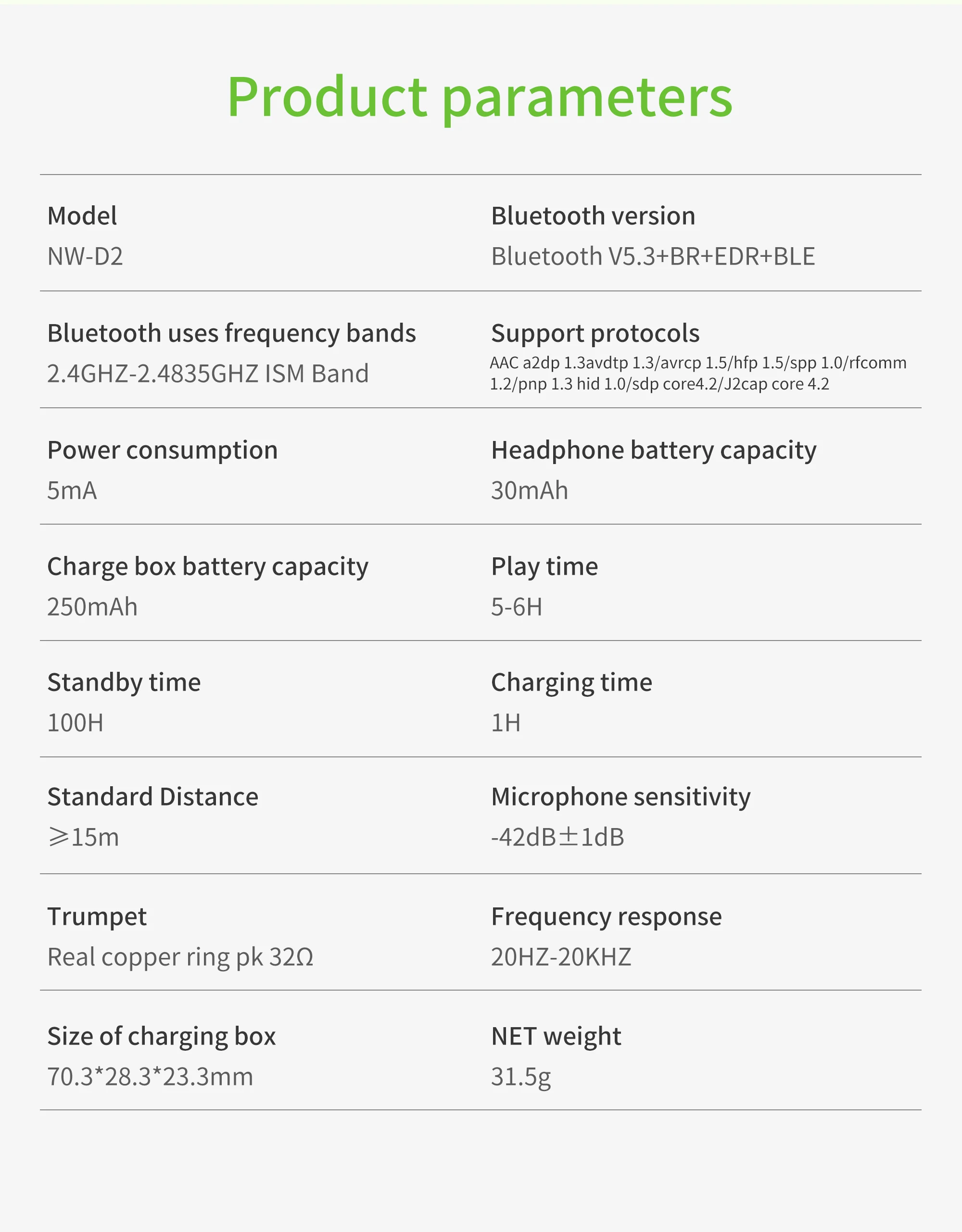 • Charging case battery: 250mah;
