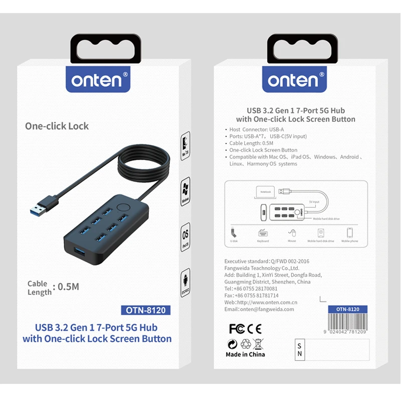 Buy Onten USB 3.2 Gen 1 7-Port 5G Hub with One-click Lock Screen Button available at mybrandstore.pk