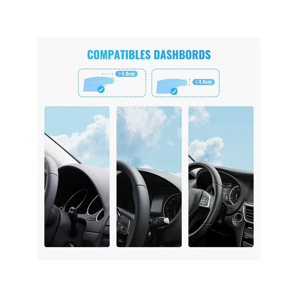 * Dashboard HUD Design–With Head-Up Display design, the dash clip mount keeps your phone right above the steering wheel and convenient to use as a hands-free GPS navigation.