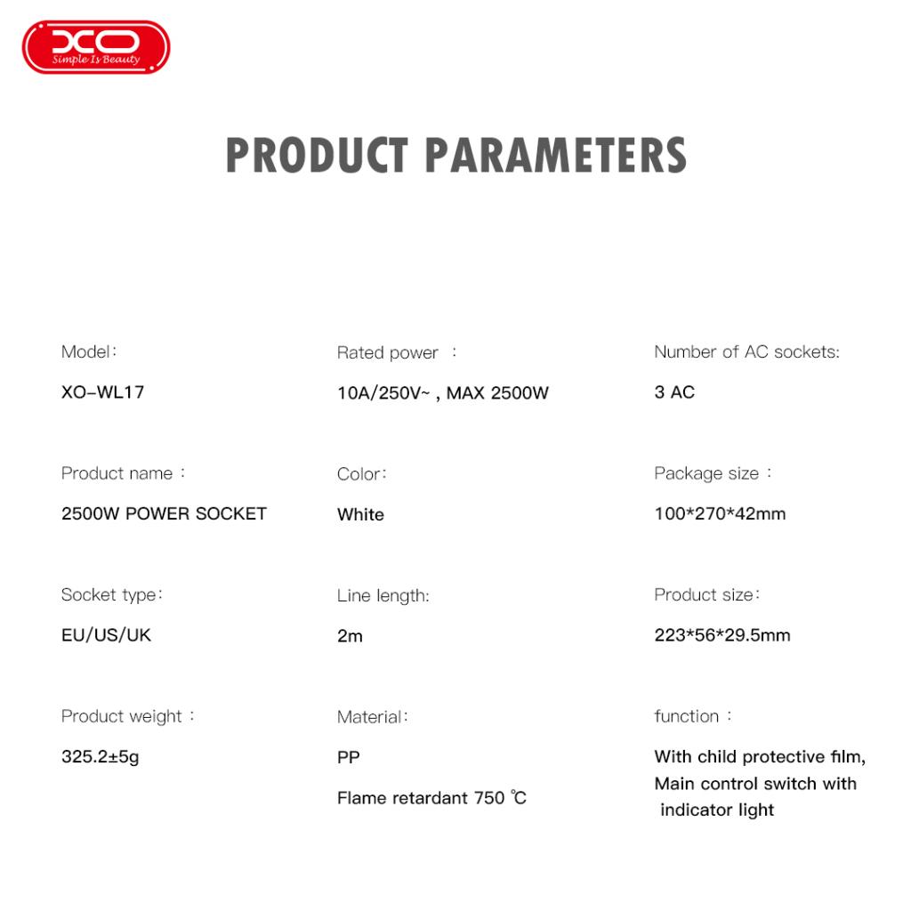 Buy XO 2500W 3AC Power Socket WL17 available at mybrandstore.pk