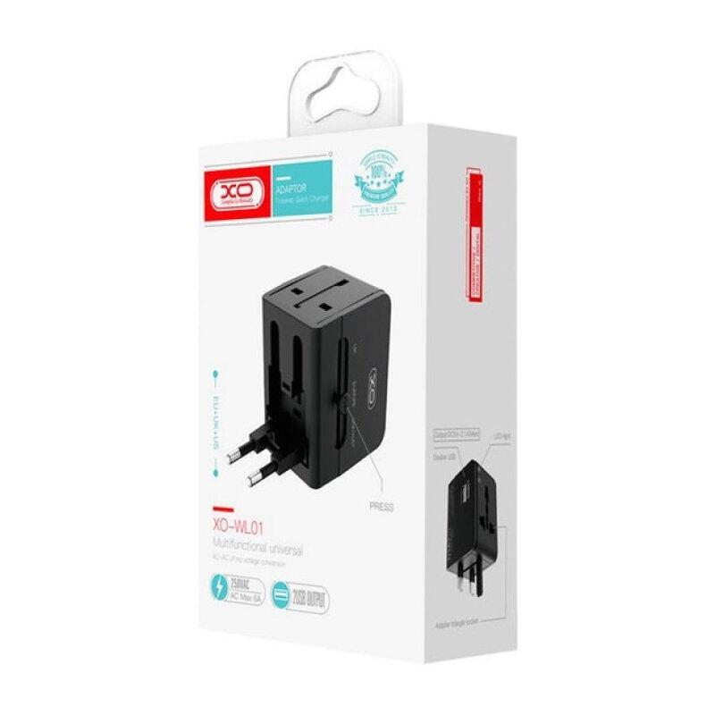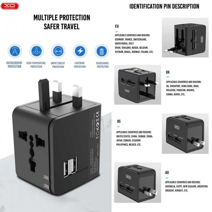 Buy XO WL01 Dual-USB Multi-Function International Travel Adapter, 2 USB ports 1 Converter Power 1500w(Max), Smart Charging adapter with Overcurrent Protection and much more Charging Head UK/US/EU/AU available at mybrandstore.pk